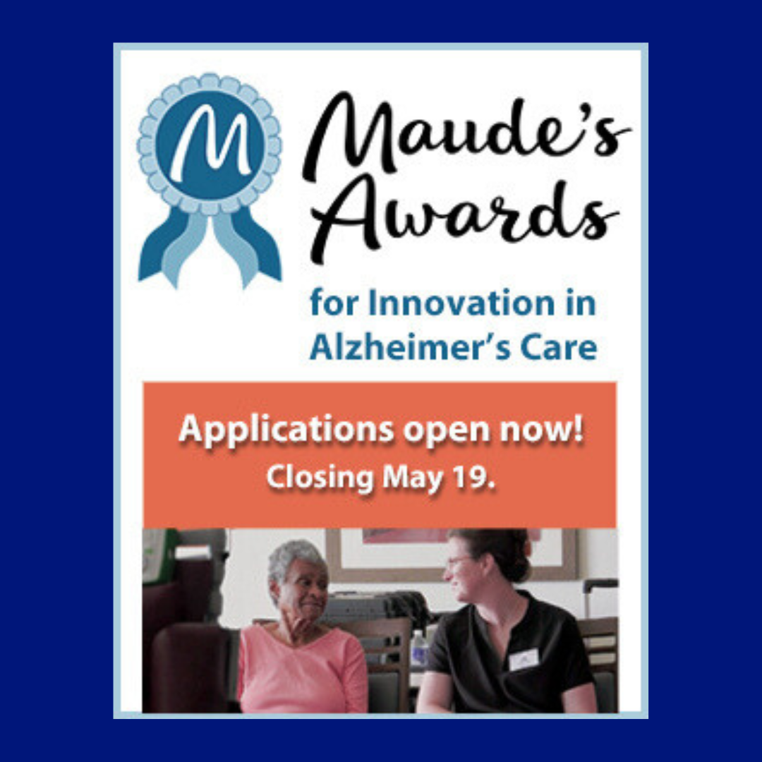MAUDE’S AWARDS RECOGNIZES, REWARDS, AND SHARES INNOVATIVE CARE FOR PEOPLE LIVING WITH ALZHEIMER’S DISEASE AND OTHER FORMS OF DEMENTIA. LEARN HOW YOU COULD WIN $5,000 TO $25,000.
