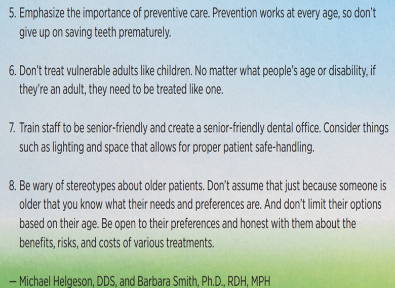 I also think we all can relate to these points, no matter what type of health care professional we are.  Ageism is a thing, but I truly have never seen it in my line of work in any of the places I go to, let alone my dental office.  No one can teach love, respect, and value of another’s life.  It comes from within.  And when I see this in action, I feel such a sense of gratitude and compassion for both parties.