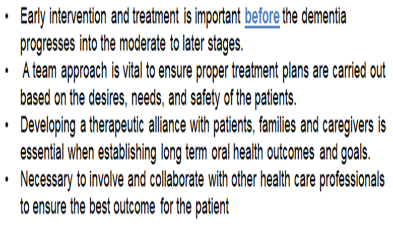 All of us health care professionals coming together for the one sole purpose of providing the best care we can for our memory care residents is not easy.  Here are two slides I use for my lectures for my dental professionals: