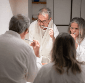 Thinking outside the box to help our residents maintain their smiles by brushing their teeth is crucial in preventing not only bad breath, but also helping to slow down the effects of swallowing problems.