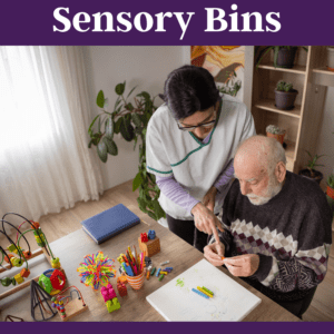Imagine your loved one experiences agitation and needs someone to calm them down. You give them a sensory bin with various tools to stimulate their brain. some people may feel relaxed after touching sand, rice, soft materials, and other comforting materials. Others may feel more comfortable with screw-like gadgets that remind them of their work or hobbies of the past.